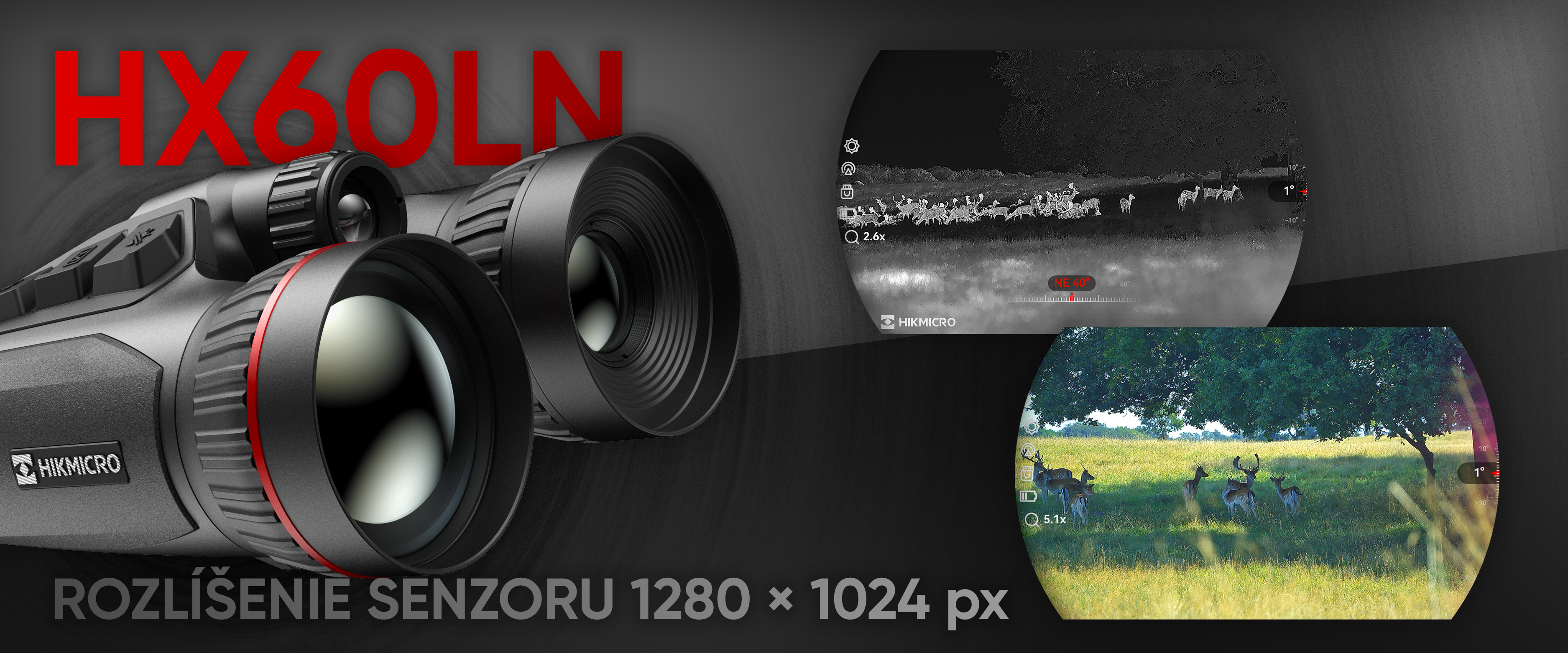 Das Modell HX60LN kombiniert ein optisches Kernmodul mit brillanter K 4K UHD Auflösung und ein Wärmebildmodul mit einer Sensorauflösung von satten 1280×1024 px und einer Wärmeempfindlichkeit von 18 mK. Das gesamte Bild wird über ein OLED-Display mit einer Auflösung von 1920 × 1080 px.